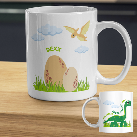 Mok met tekst 'Mijn eerste grote jongens mok!' en naam