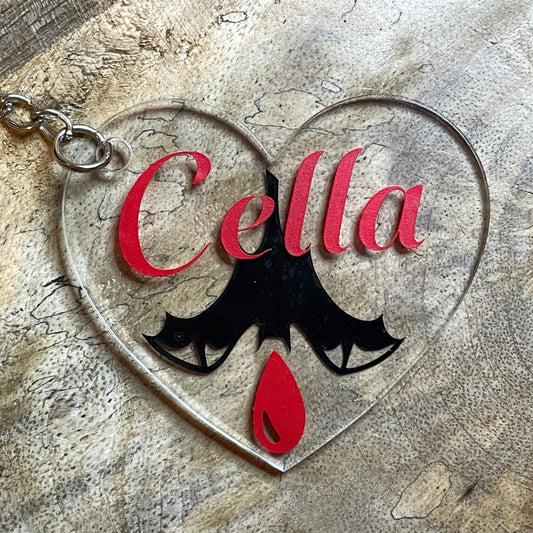 Sleutelhanger Plexiglas met vleermuis en je naam
