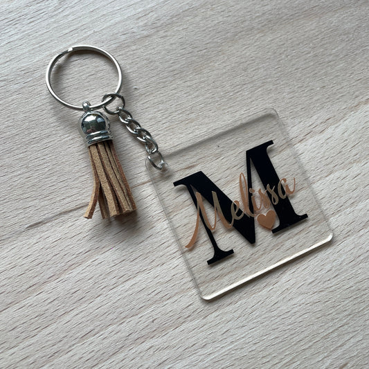 Sleutelhanger Plexiglas met je eigen naam en initiaal
