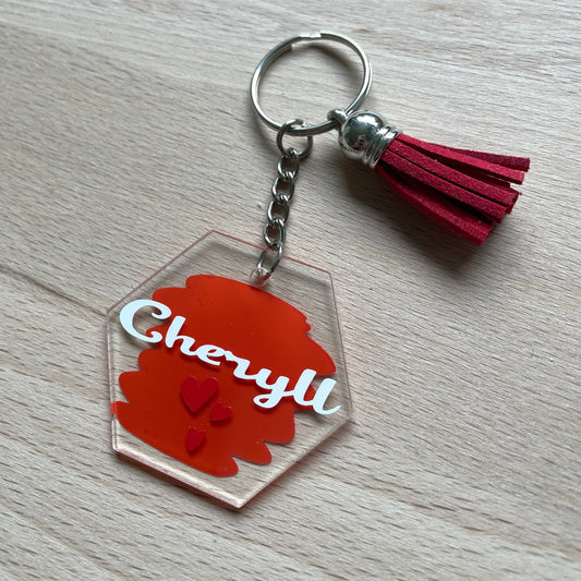 Sleutelhanger Plexiglas hart met naam en bloemetje