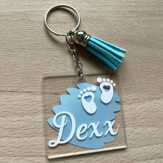 Sleutelhanger Plexiglas 'geboorte' met eigen naam