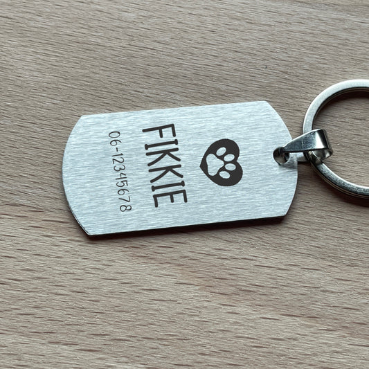 Dogtag RVS 'hondenpoot hart' naam en telefoonnummer